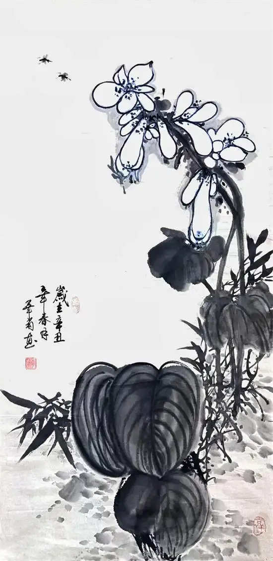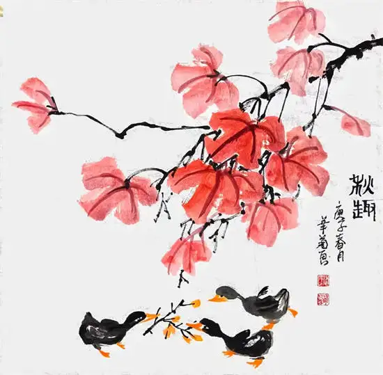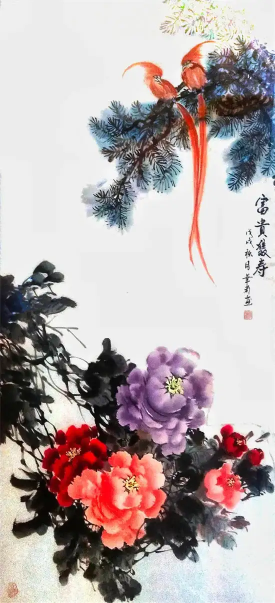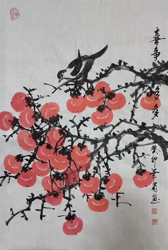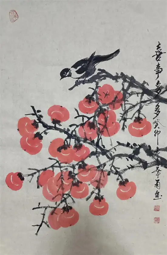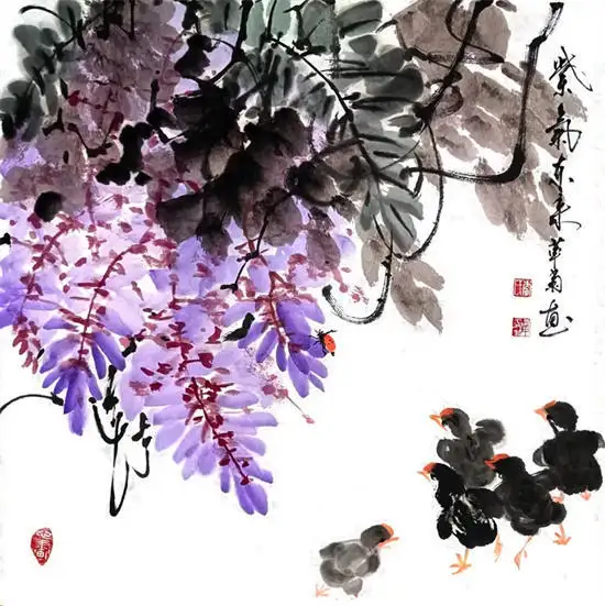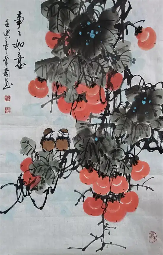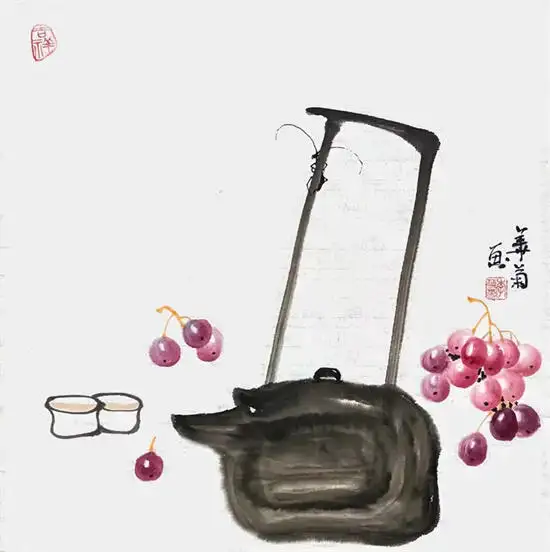 李华菊老师尤其擅长画写意花鸟、牡丹、山水、瓜果蔬菜、柿子、代表作写意葡萄,最为出类拔萃,而且还多次获国内书画比赛大奖,李华菊老师的书画笔法娴熟,自然生动。诗意之作,让人不禁想摘一颗来吃。葡萄一般比作硕果累累,寓意丰收。紫葡萄也寓意紫气东来,多子多孙,室内悬挂有吉祥之意。