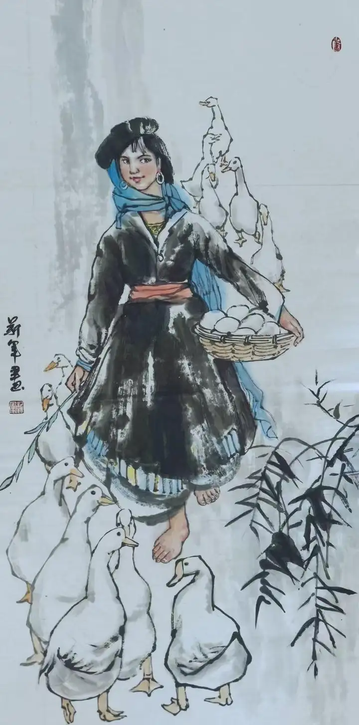 在艺术创作领域,靳军主攻油画,在军事、农村,民族题材及山水、人物系列创作方面成果丰硕。他为多家军队史馆创作了众多大型军事题材作品,这些作品极具视觉冲击力。其油画追求意境表达,饱含深情,用写实笔触刻画各民族纯洁善良的内心世界,展现乡树生命自强之美,人物造型准确,充满生活情趣。他的国画作品,涵盖人物、山水、花鸟,风格清新隽秀、空灵秀逸,格调典雅,备受赞誉,被多家军史馆、纪念馆及海内外藏家收藏 。除了绘画,靳军还在艺术教育和社会活动中发挥积极作用,担任多个艺术机构的重要职务,为艺术传承和发展贡献力量。
