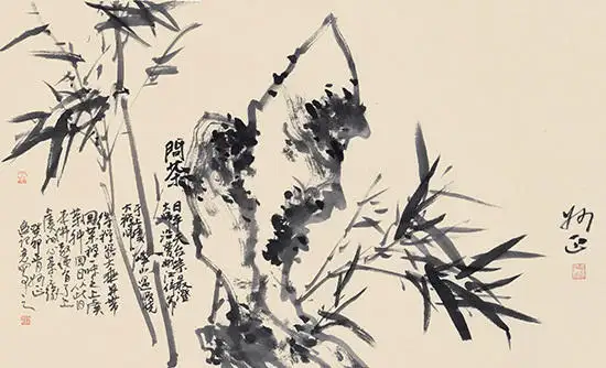 之所以有如此深邃境界,一是完全得力于妙正对写意笔墨的操纵控制能力,即技巧;再就是他有着三十余年净素修持,似佛家般禅修生活的长久侘寂之心,是自己对人生、对世间“无常是常”的如是禅释——即上及“目净修广如青莲”,犹李白“戒得长天秋月明,心如世上青莲色”(《僧迦歌》)。故妙正虽师八大,却没有剑拔弩张,形色怪诞,更多的是笔酣墨饱,丰腴俊健,以极大的余情、激情演示自己的心境;然后把这种情境付诸于墨,跃然纸上,足使人无限遐想,神彩异常。