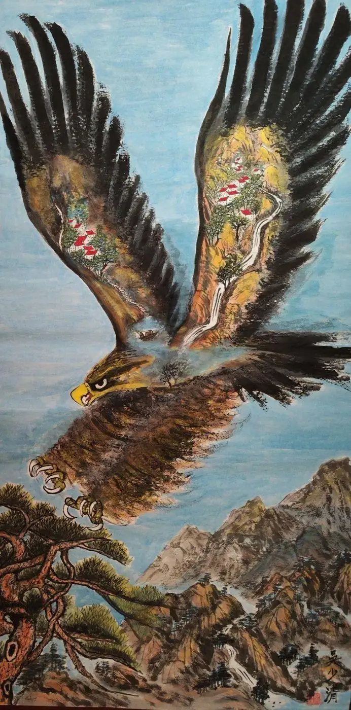 当我们凝视吴老师的作品,看到的不仅是满幅的生灵与山水,更是一位画家对自然的深情告白,对生命的虔诚礼赞。它以艺术的形式,将“万物共生”的宏大命题拆解为一个个鲜活的视觉符号,让观者在审美体验中,悄然完成一次对自然、对生命的精神朝圣。